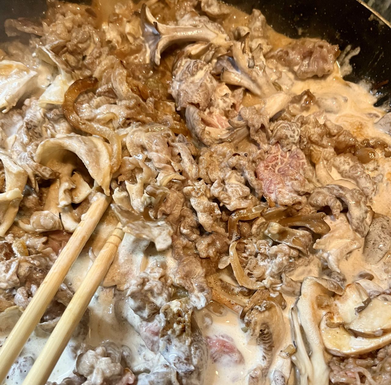 料理研究家リュウジさんのバズレシピからビーフストロガノフにチャレンジ!ちょっと肉が多すぎまして・・・