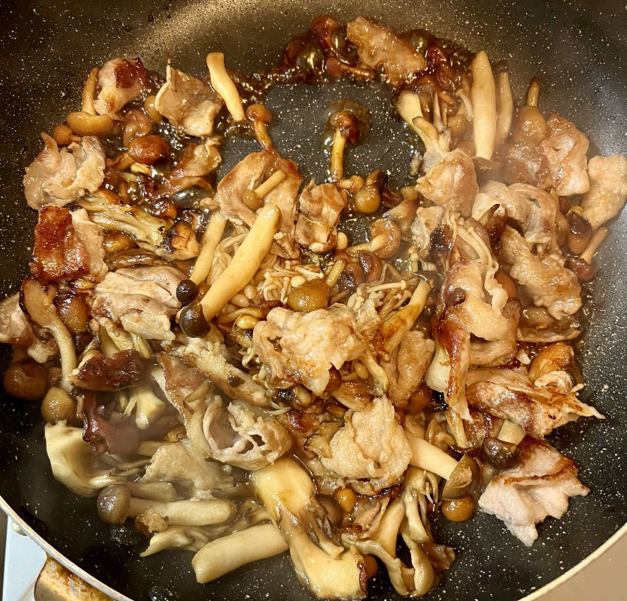 茶色の料理はうまい!を実感させてくれるレシピでした。動画の中でもおっしゃっていましたがなめこの香ばしさが口の中に広がり深い味わいのスパゲティ。バラ肉も脂っこいかなと思いきやサッパリとたべることができました。なんだか全体としてまるい味という気がしました。きのこたくさんでヘルシーな感じもあってよい選択だったかな。