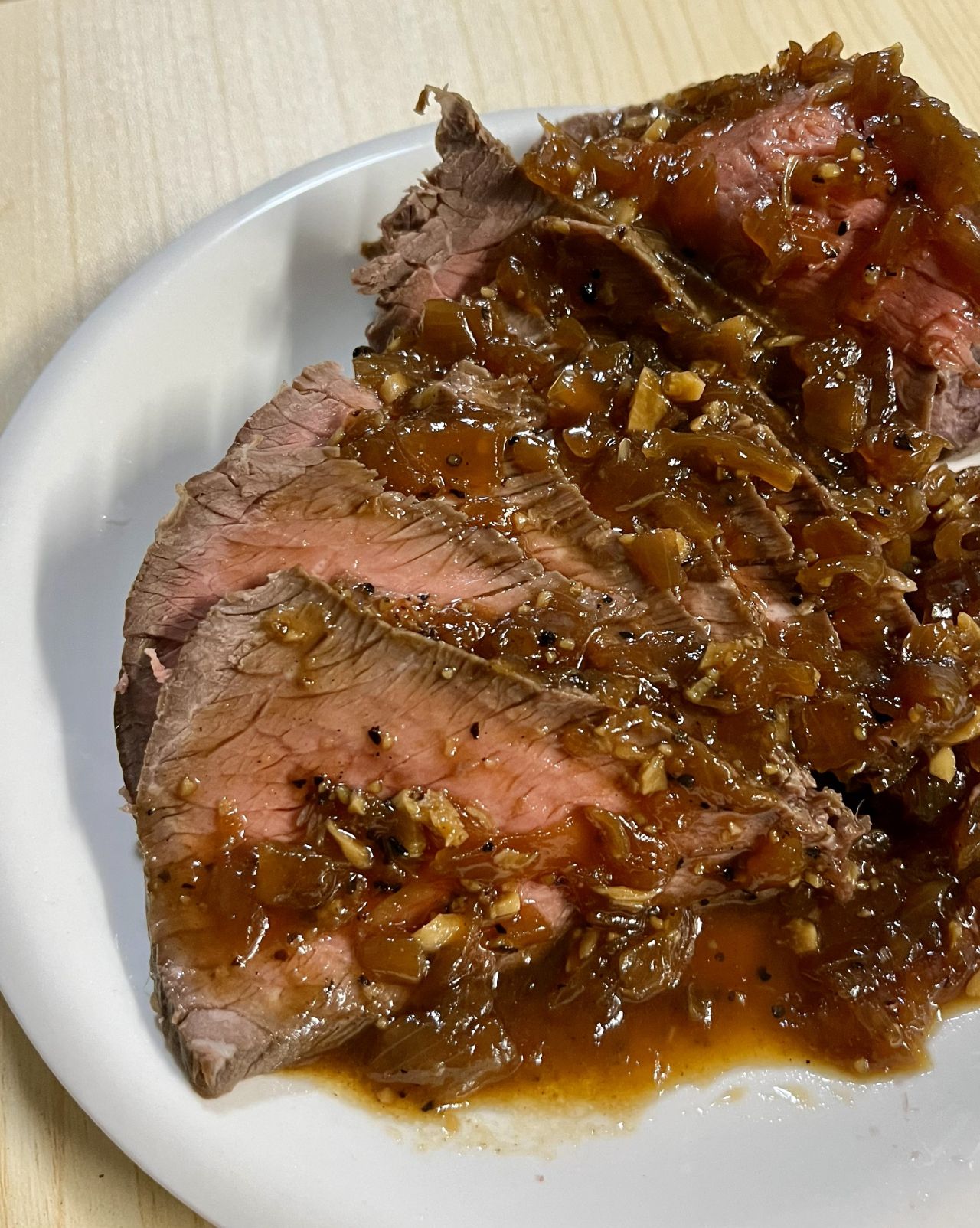 あとやはり、土台の玉ねぎが水分で崩れ広がってしまうところ。再度中央に寄せてもすぐに崩れてしまいました。玉ねぎにもよるのかなと感じたところです。しかしながら初めてのローストビーフが大変満足いく結果となりました。まさか、自分でできるとは思ってもいませんでした。ありがたや。