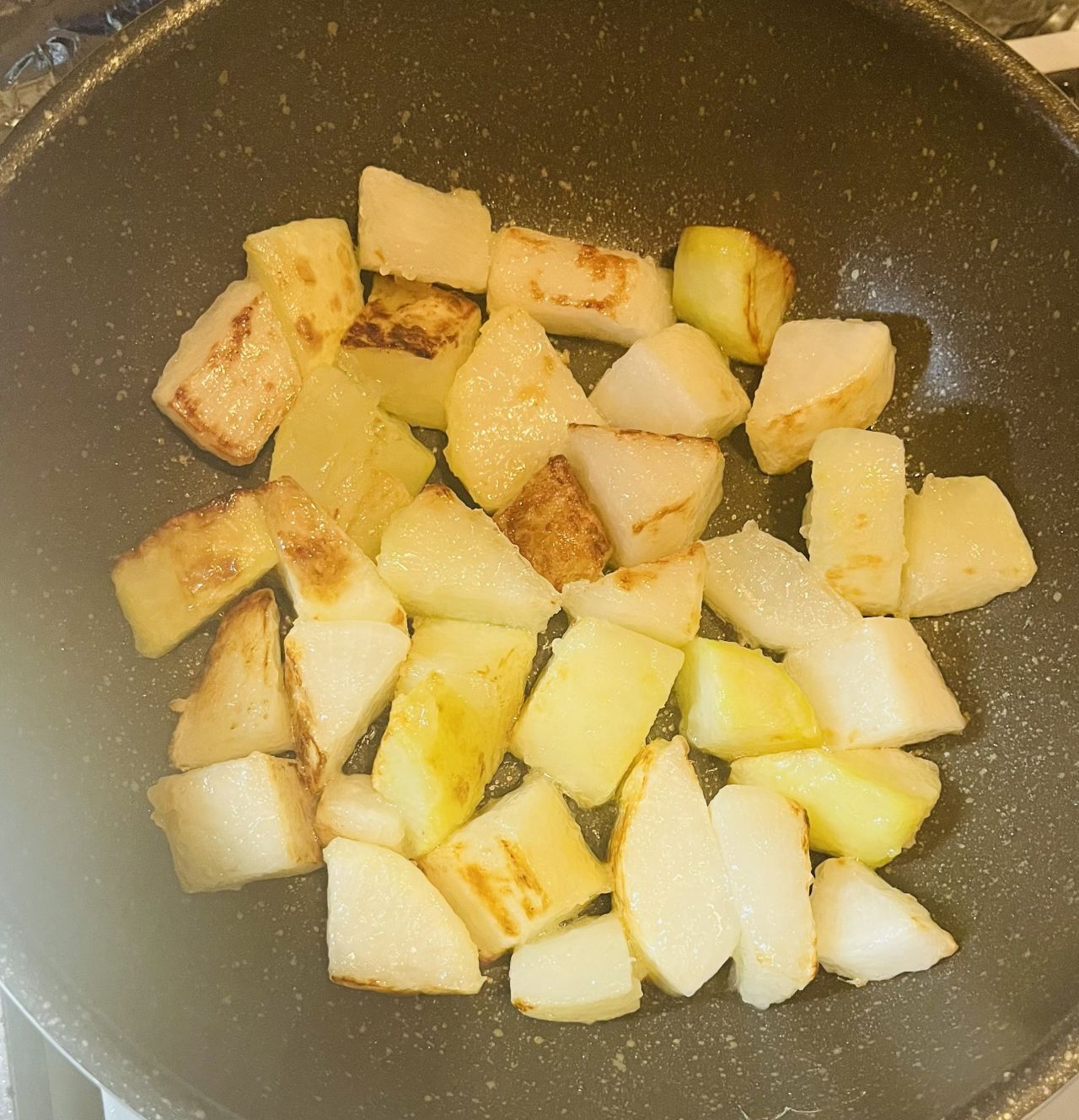 なかなか焼き色がつかなくてちょっと手間取りました。油が少なかったかもしれません。