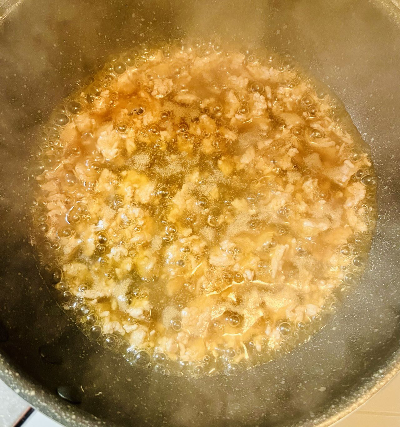 豚ミンチ炒めて調味料を入れて加熱。煮詰めていくとほどよくとろみがつきました。