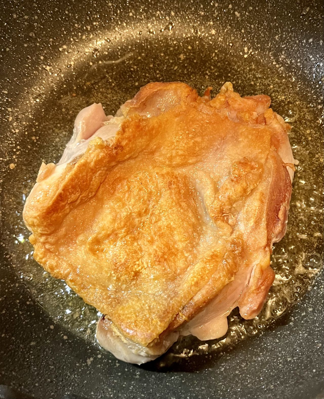 キッチンバサミ(一応持ってます、ほとんで出番はないですけど)でもも肉をチョキチョキ。柔らかい!驚きました。おこげもうまくできたようです。
