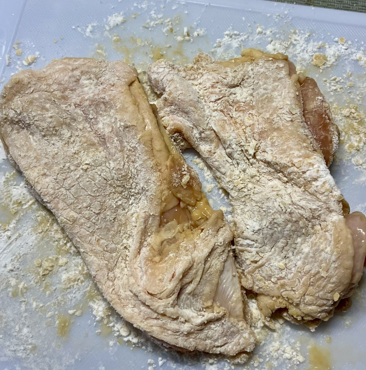 片栗粉まぶすのが下手です。