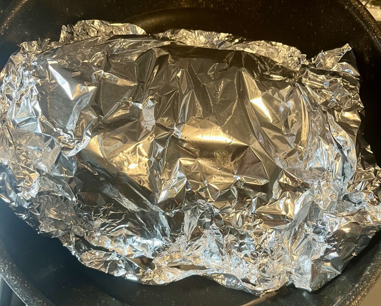 加熱しましていいかな??と開いてみたところ。なんだか火が通ってないと思われる部分があったのでアルミホイルを閉じて再度加熱しました。